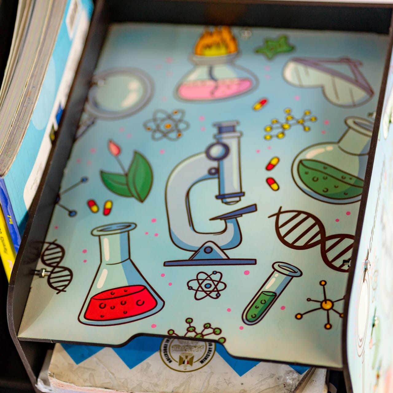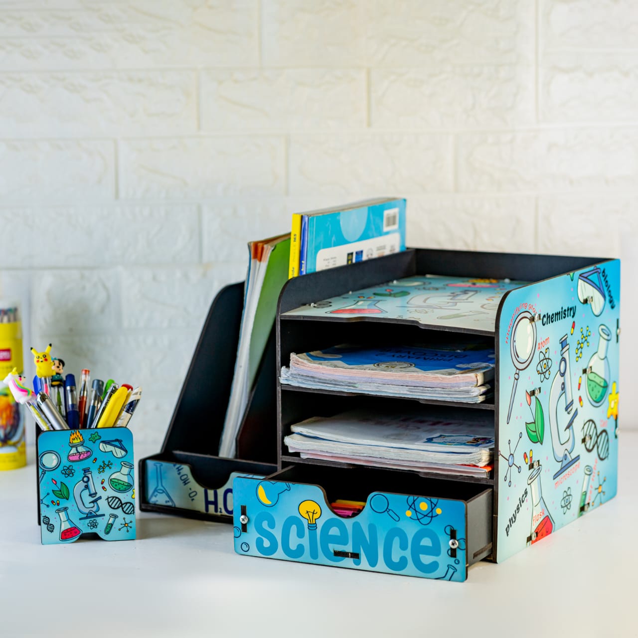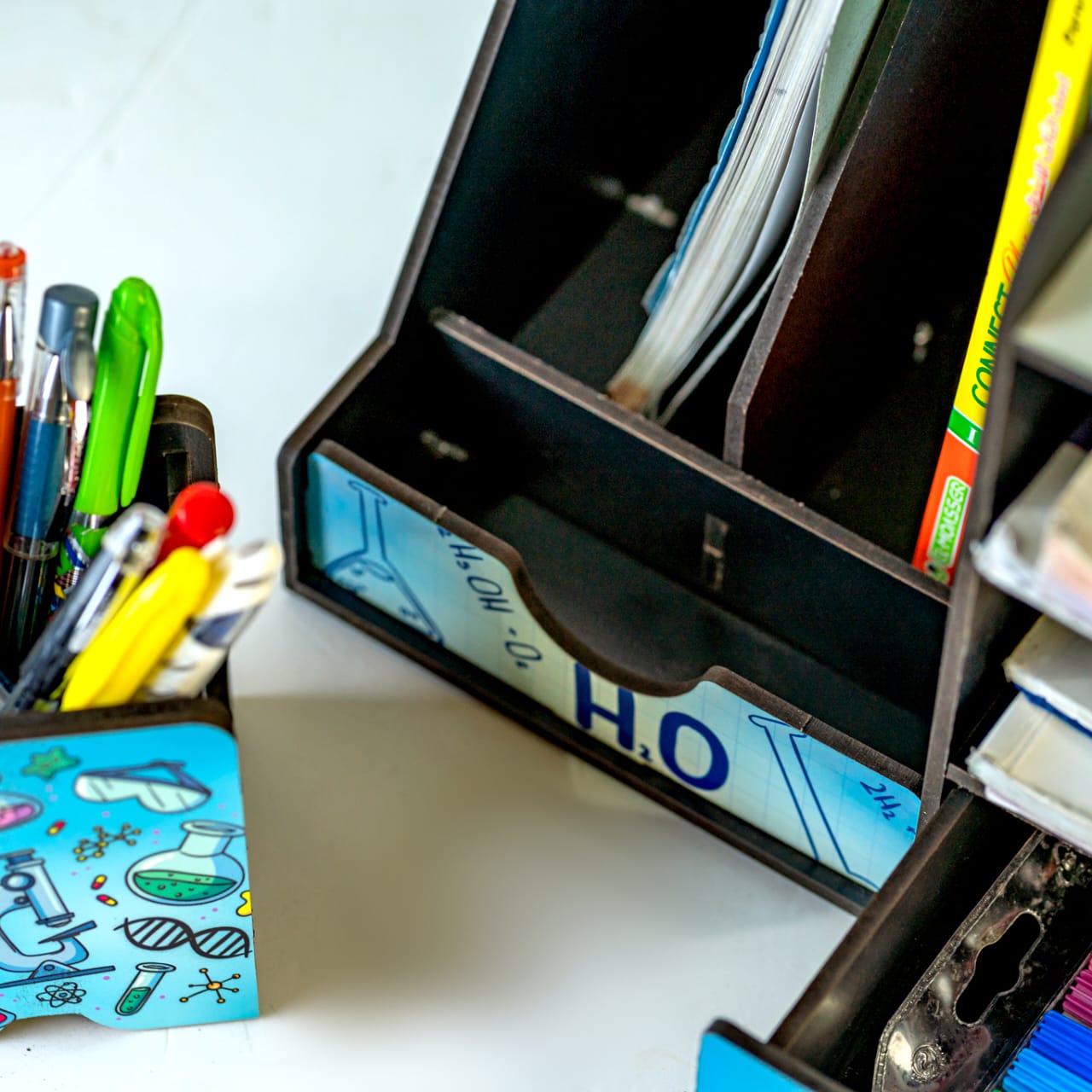 منظم مكتبي دراسي مطبوع للأطفال . تصميم مطبوع بشخصيات كرتونية وألوان مبهجة