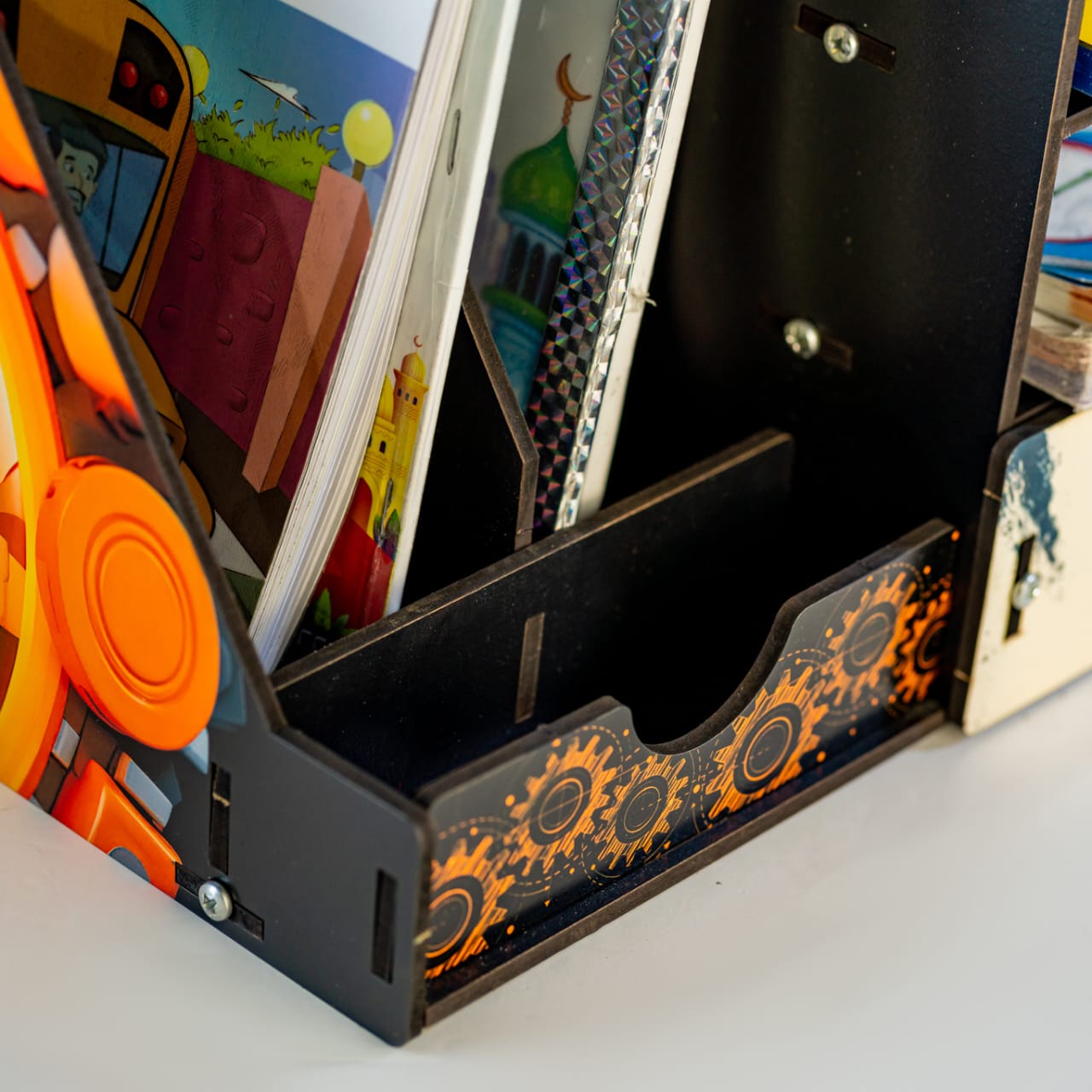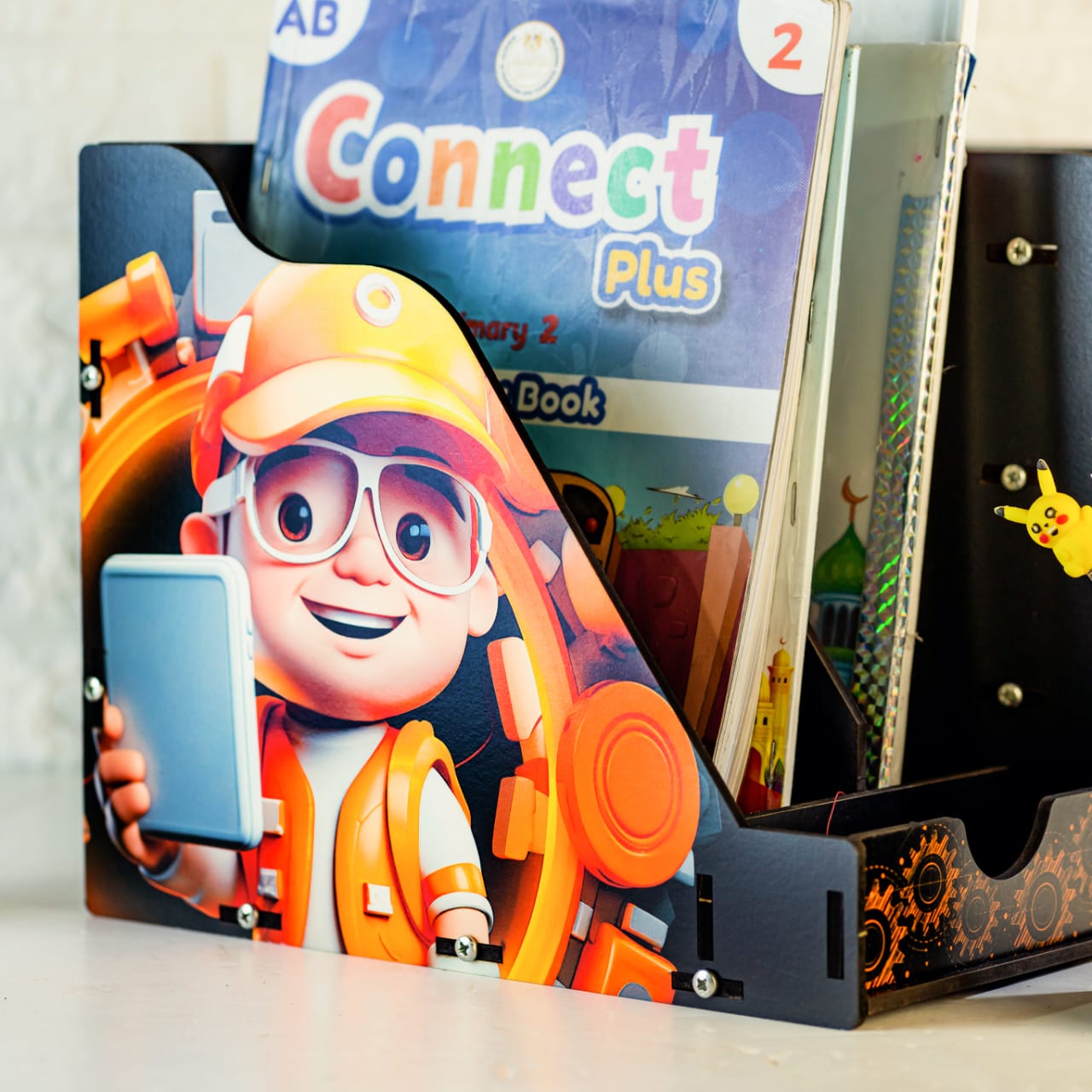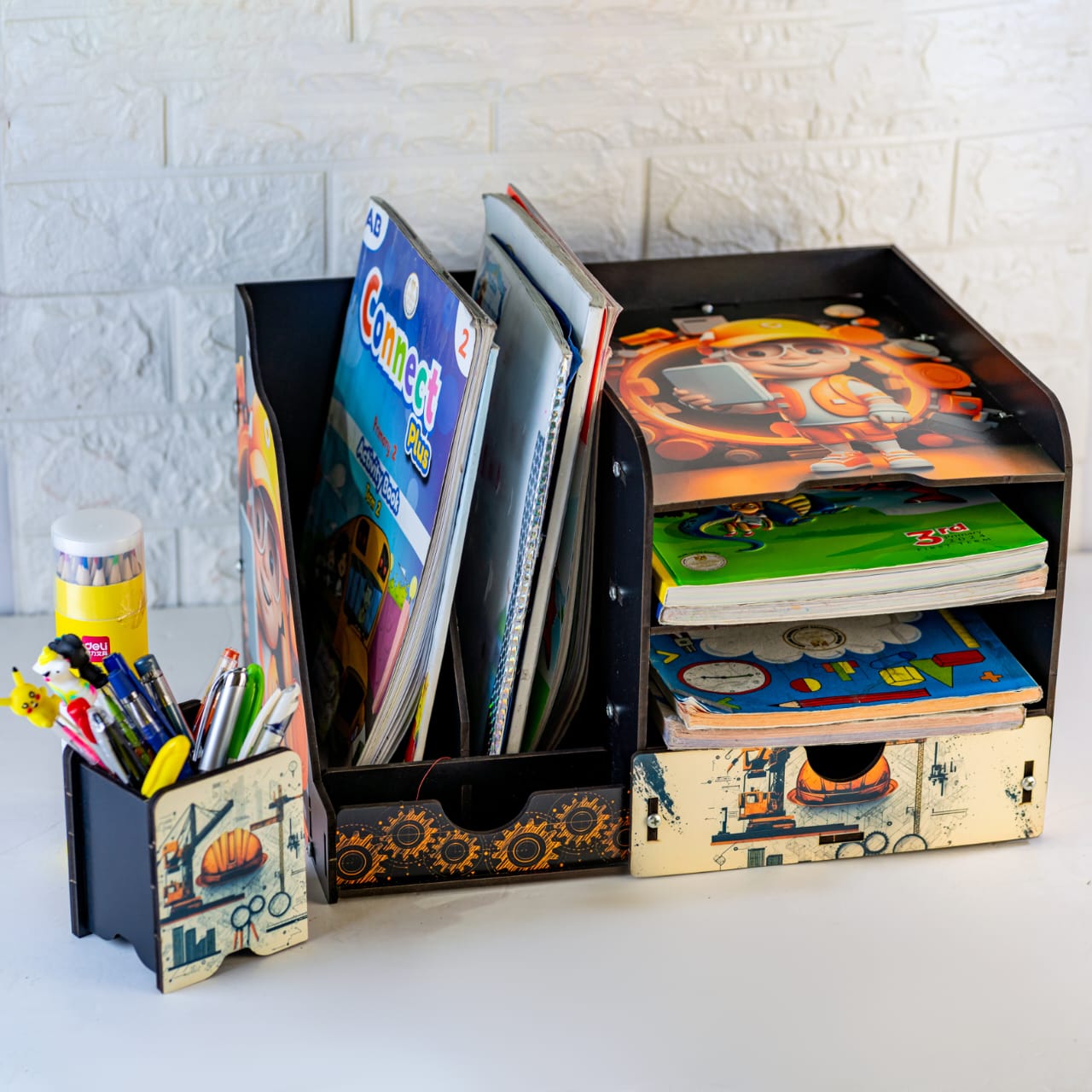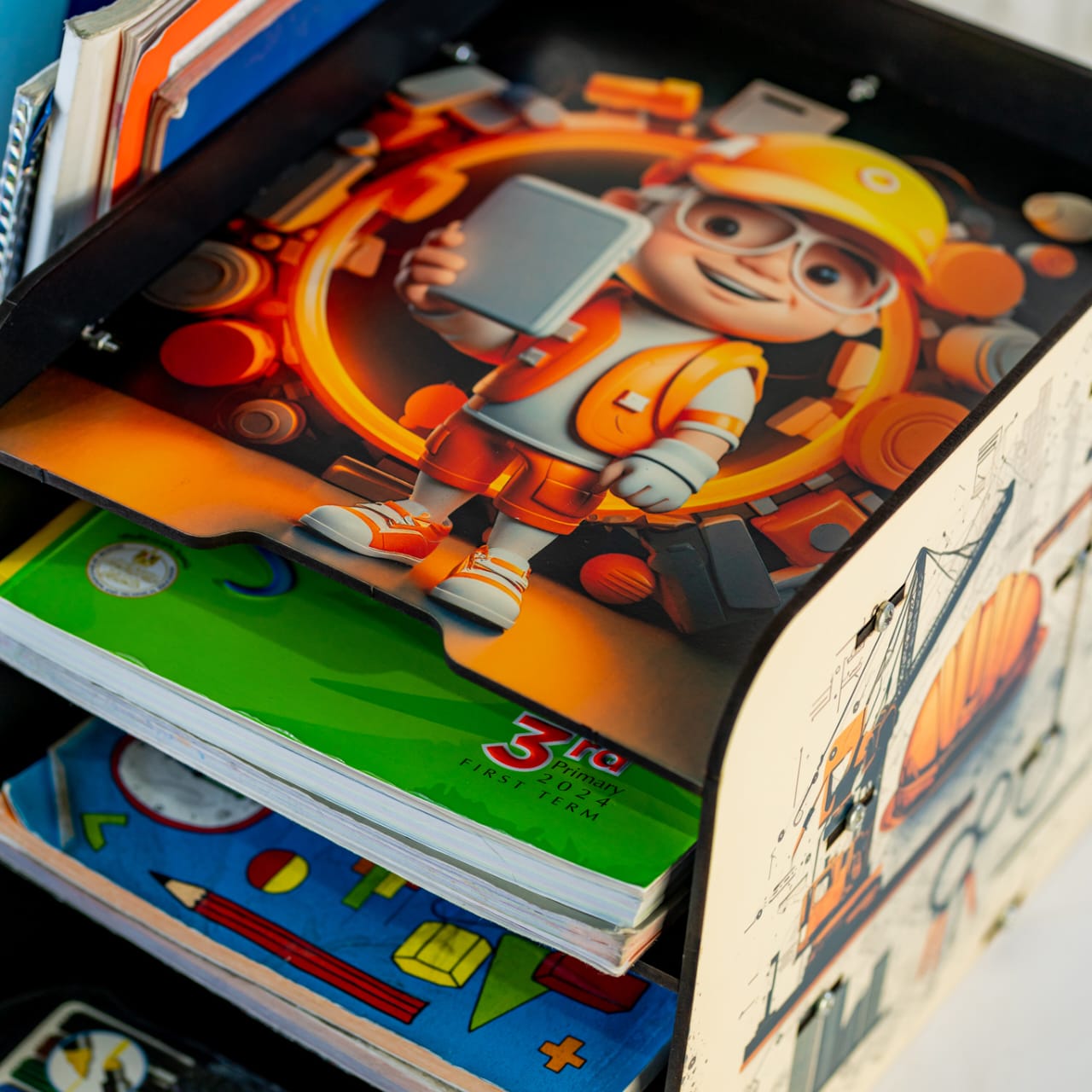 منظم مكتبي دراسي مطبوع للأطفال . تصميم مطبوع بشخصيات كرتونية وألوان مبهجة