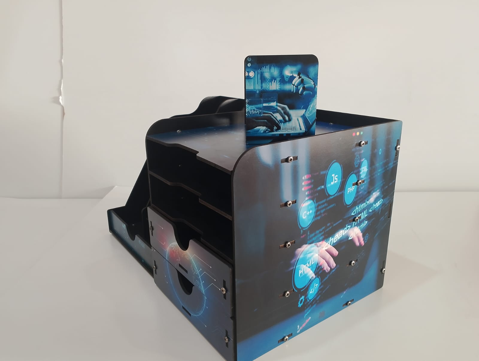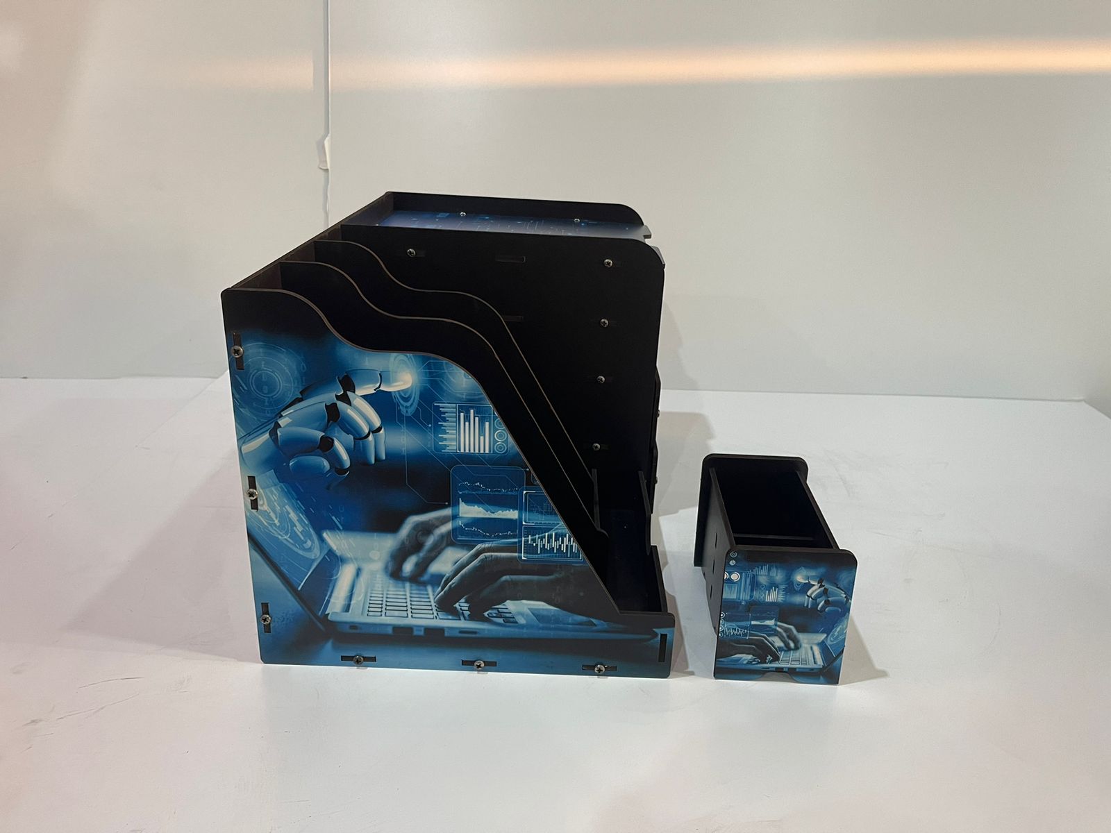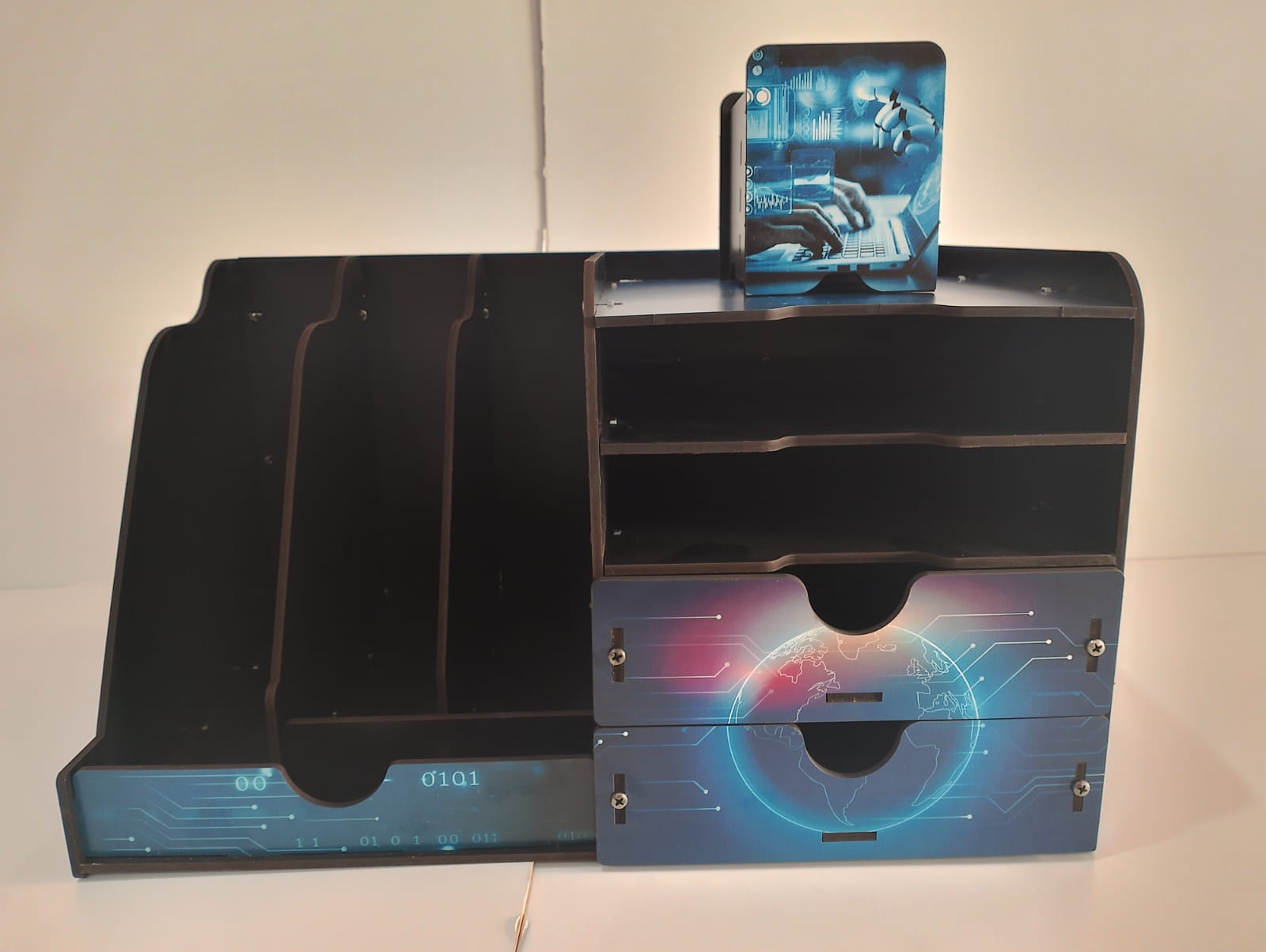 منظم مكتبي دراسي مطبوع للأطفال . تصميم مطبوع بشخصيات كرتونية وألوان مبهجة
