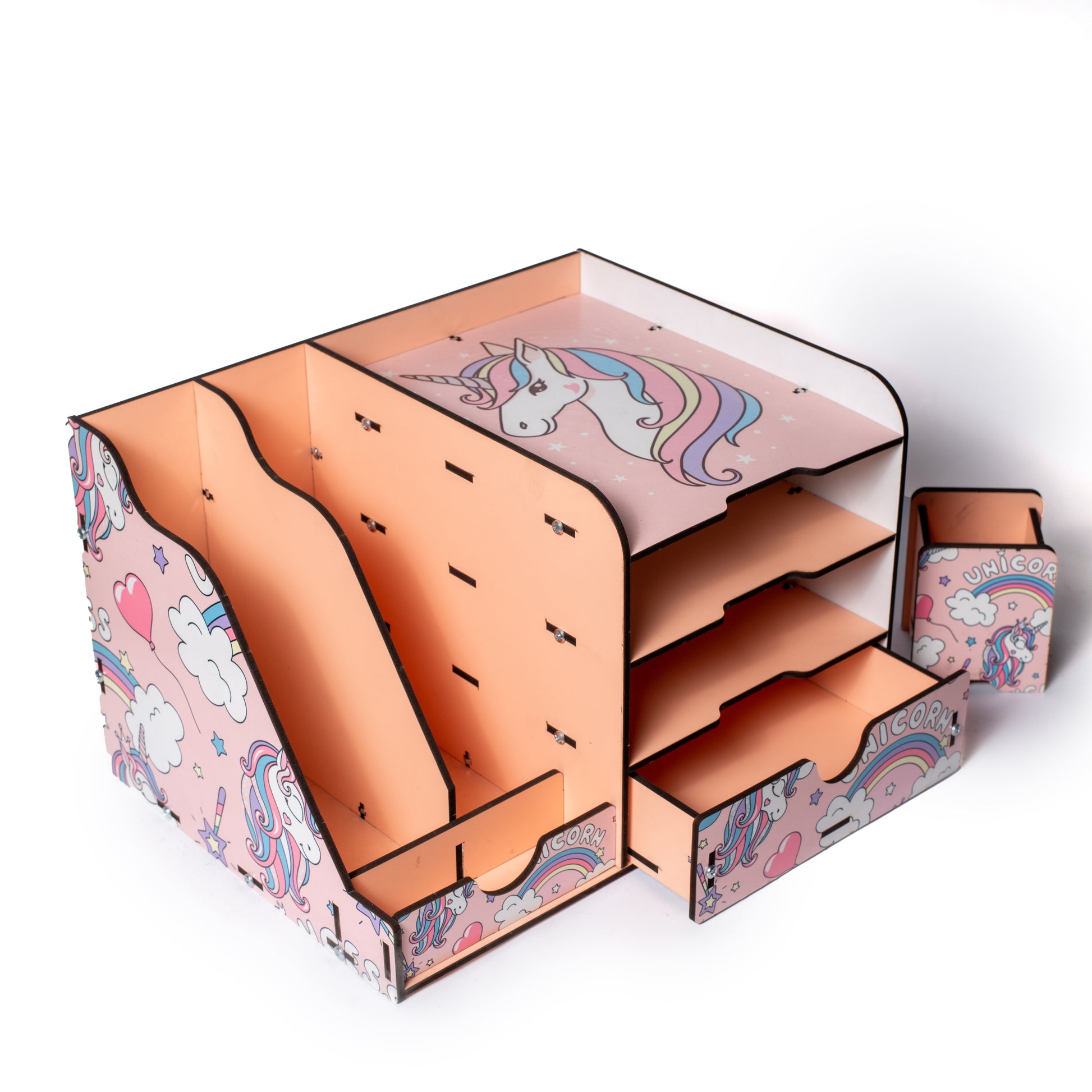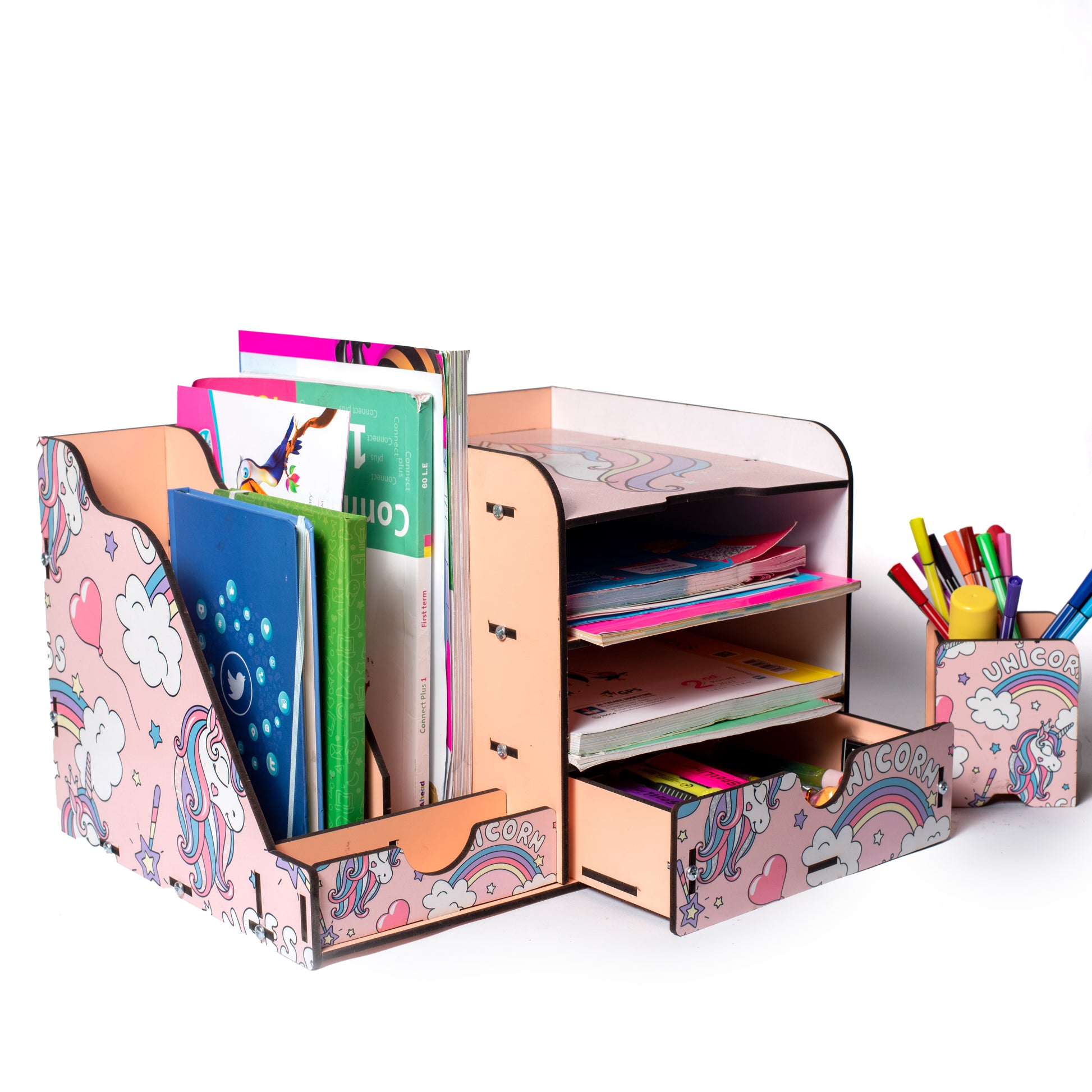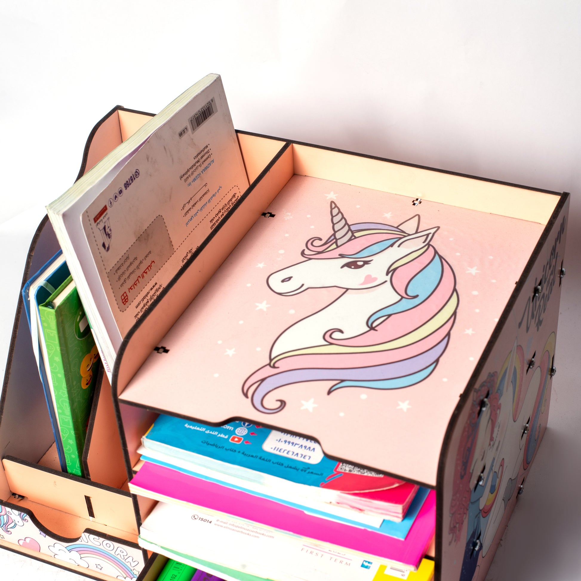 منظم مكتبي دراسي مطبوع للأطفال . تصميم مطبوع بشخصيات كرتونية وألوان مبهجة