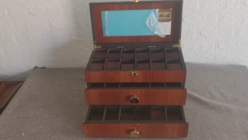 حافظ علي نظاراتك.ساعاتك وخواتمك منظمة بأناقة مع هذا المنظم العملي والفاخر يأتي ب24 خانة قابلة للتخصيص حيث يمكنك إعادة ترتيب التقسيمات لتناسب احتياجاتك - سواء كنت تود استخدامه بالكامل للساعات أو تقسيمة بين الساعات والنظارات والخواتم والإكسسوارات الأخري