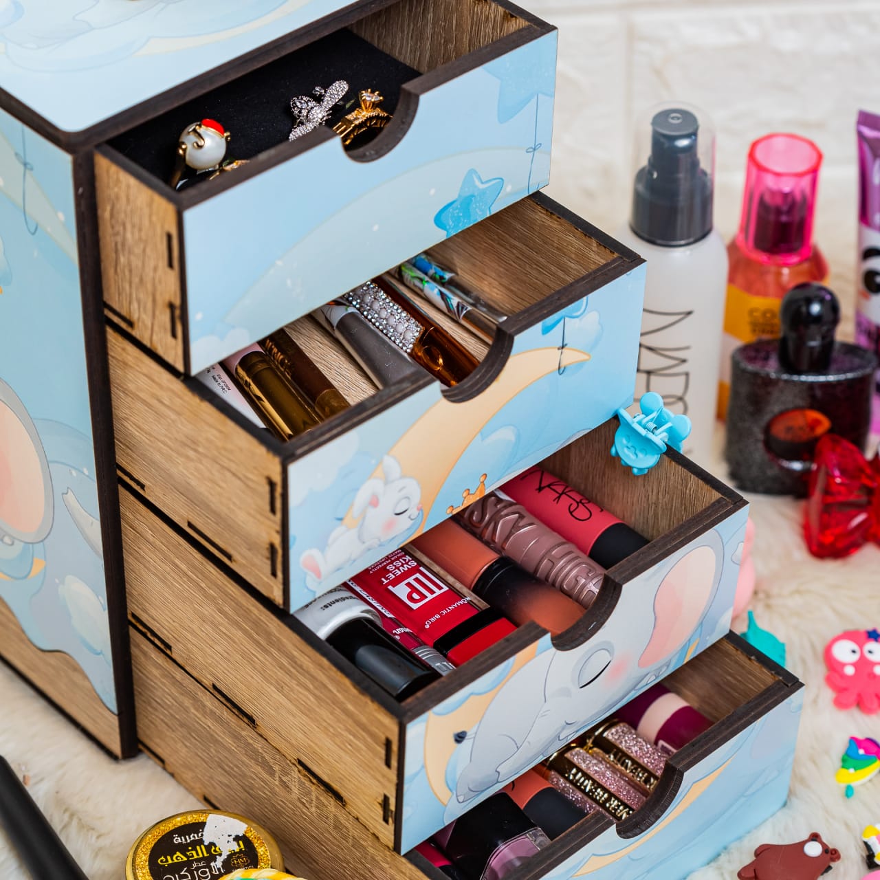 وحدة أدراج متعددة الاستخدام للتسريحة او للادوات المختلفة صغيرة الحجم لتجنب فقدانها مثل الاكسسوارات والمكياج ومجموعة الخيوط وكذلك تصلح للادوية المسامير الاكسسوارات المدرسية ..... الخ